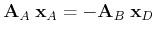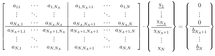 where the upper half corresponds to the inner nodes whereas the lower half can be identified by the boundary nodes. The unknown values are underlined. Expressed as block matrices the equation system reads: