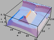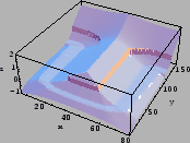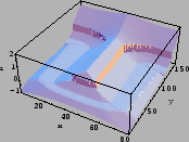 Test structures of interconnect lines of memory cells were fabricated by an industrial partner, and several SEM images thereof were used to validate the corresponding simulations. For metal lines 1 and 2 the deposition of silicon dioxide films from TEOS was considered and for metal line 3 the deposition of silicon nitride was simulated. The detail in Figure 12.5 shows metal 2 and 3 layers. The test structures contain trenches of different widths and the influence of the width is precisely reproduced in the simulations. An example of void formation after silicon nitride deposition (cf. Section 12.6) is shown in Figure 12.5 and Figure 12.6. Figure 12.7 shows the corresponding level set function. The shape and position of the void is reproduced correctly in the simulation.