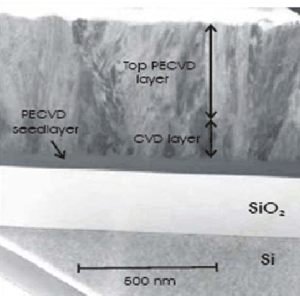 1) At first a PECVD seedlayer with 95 nm thickness is deposited as nucleation layer for the