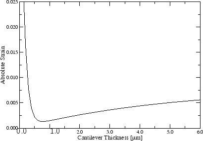 sacrificial layer, as described above. After removal of this sacrificial layer, the deflection of the free 1mm long cantilever was measured at different thicknesses from 10 down to 1