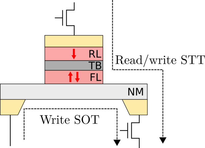 sub-ns switching speed advantage of SOT switching. Compared to conventional STT switching, the faster speed and zero incubation time come at the cost of a larger footprint.