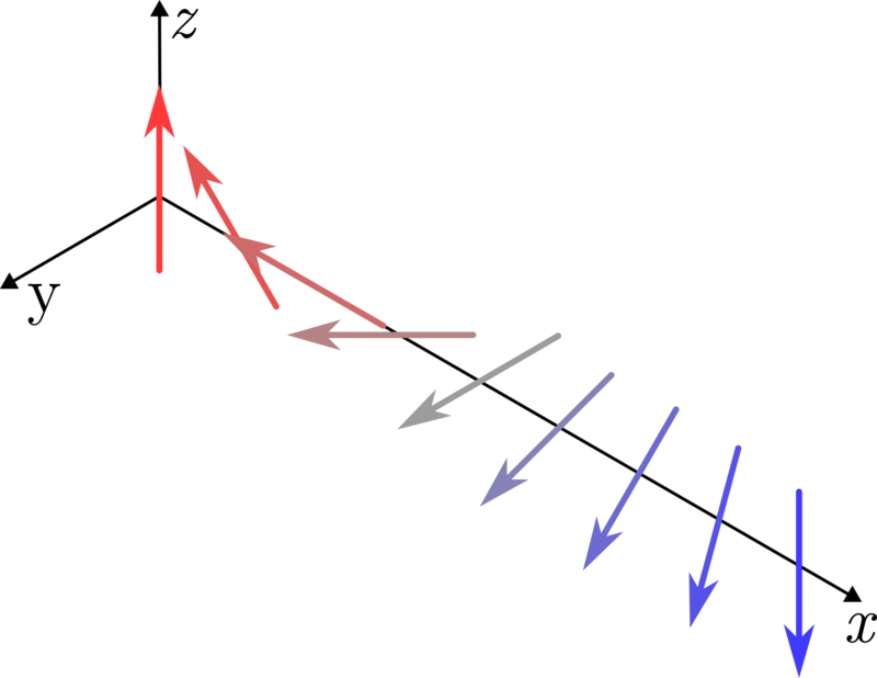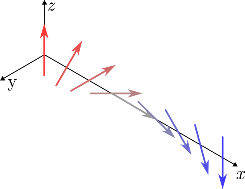 In certain material systems, Dzyaloshinskii and Moriya discovered that neighbouring spins can interact through the SOC, causing an antisymmetric exchange interaction referred to as the Dzyaloshinskii-Moriya interaction (DMI).