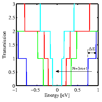 energy, and so the conductance increases with the ribbon's width. This increase is significant at high temperature. On the other hand, the band-gap