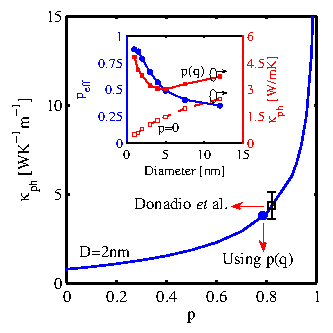 . The MFP then starts to increase, the effect of phonon-boundary scattering is reduced, and the thermal conductivity increases. This is indicated in the inset of Fig. 5.6 (right axis), which shows that as the effective specularity