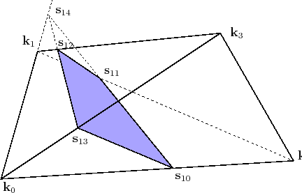 In a first step the table of sorted tetrahedrons as defined in the last section is used to efficiently find tetrahedrons which intersect the considered energy surface. In the following both a conventional way to obtain this area and a more efficient approach based on the use of pre-calculated coefficients are presented. For the conventional calculation of the equi-energy plane the intersection points of the plane with the tetrahedron's edges are determined first.