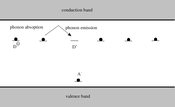 Semiconductors exhibit intrinsic conductivity at sufficiently high temperatures due to thermal activation of carriers from the valence band to the conduction band. A wide band gap causes a rapid decrease of this kind of conduction at lower temperatures. Therefore shallow impurities become the most important provider for free carriers as their ionization energy is much lower than the bandgap. At low temperatures the thermal activation energy is so small that the carriers are recaptured by the impurities. This is a gradual process known as freeze-out.