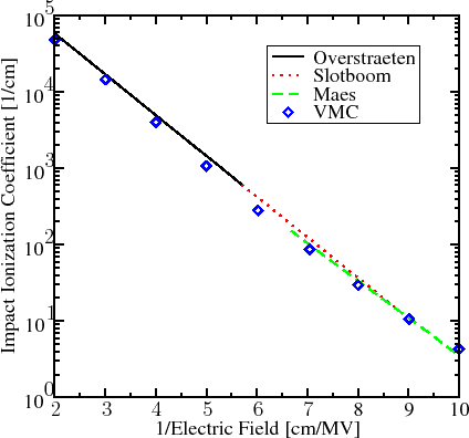 Impact ionization is modeled using a modified threshold expression [Cartier93]