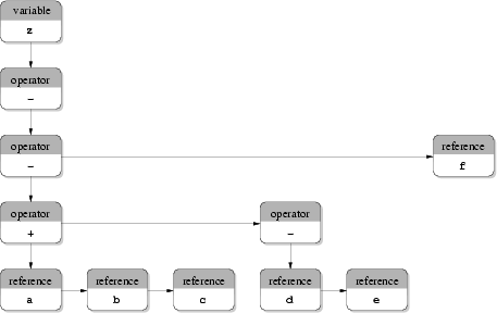 z = a + b + c - (d - e) - f;