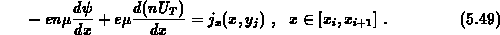 für die inneren Punkte bei Vernachlässigung der Paargeneration und -rekombination das Gleichungssystem 0.5