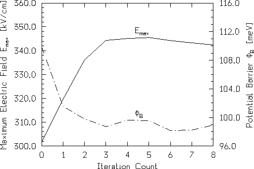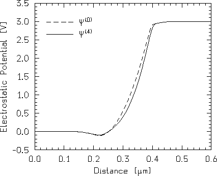 Es ist bemerkenswert, daß die selbstkonsistente Potentialverteilung nach nur drei (!) Iterationen erreicht wurde, wobei die Genauigkeitsschranken der Endwerte durch die Monte-Carlo-Methode bestimmt werden.
