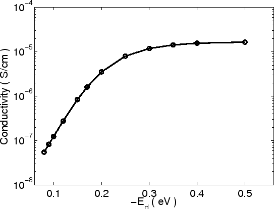 The relation between conductivity and trap concentration is shown in Fig 4.13. The parameters are