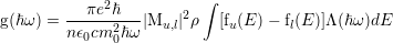 Here, f(E) denotes the distribution function for the electrons. |Mu,l|2 represents the transition matrix element, ρ is the density of states, and Λ is the lineshape function. In a quantum well, the density of states can be taken as ρ = m⋆∕πℏ2L [103] and the transition matrix element is approximated by the dipole matix element according to Mu,l = m02ω2|zul|2. Substituting these approximations for the density of states and the dipole matrix element, and using the line shape as proposed in [104]