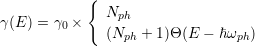 The top line describes optical phonon absorption and the bottom line optical phonon emission, where γ0 = (πe2 ∕2ℏ)[1∕ε∞- 1∕ε0]qph, qph = (2meωph∕ℏ)1∕2, and the phonon occupation number is given by Nph = 1∕(exp (ℏωph∕kBT) - 1). Furthermore, εs and ε∞ are the low and high frequency dielectric constants respectively.