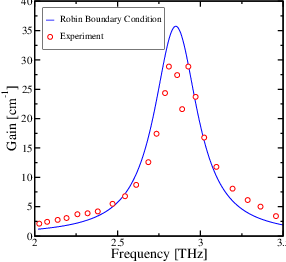 Here, we focus on the calculation of optical gain under consideration of the proposed Robin boundary conditions. Due to the strong dependence of the dipole matrix element on the wave function the determination of optical gain qualifies for verification of boundary conditions.