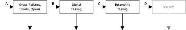 During the design phase, design for test (DFT) rules [64] and [65] are enforced and checked to ensure that tests of sufficiently high quality can be generated and applied. Figure 2.17 illustrates the flow of a typical chip test, in which there are three distinct phases.