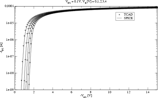 analogously to the typical approach how SPICE models are generated. Simulated characteristics of a high-voltage PMOS
