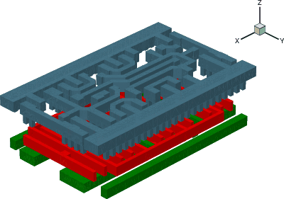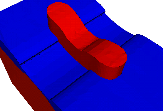 The final structure of the EEPROM cell obtained by three-dimensional process simulation, which serves as input for a finite element analysis [162] for the extraction of the capacitances and the coupling-ratio, is shown in Figure 6.14.