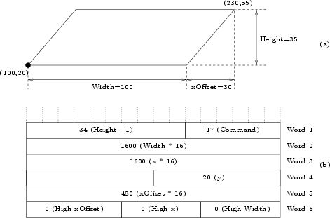 position, and y position as in the RECTANGLE command, except words 2 and 3 are