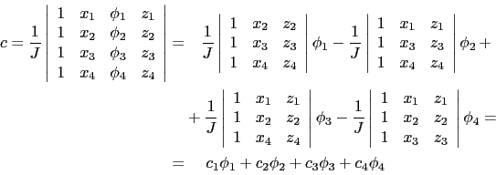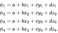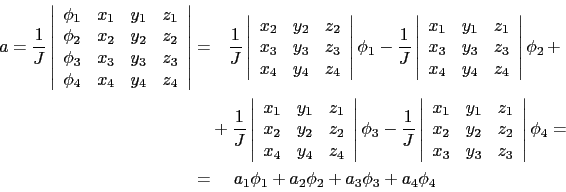The unknown field in the tetrahedral element (Fig. <4.7>) is approximated by the linear function