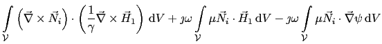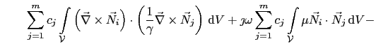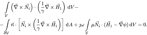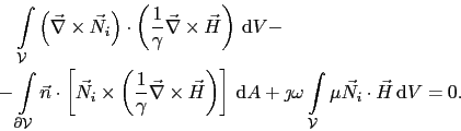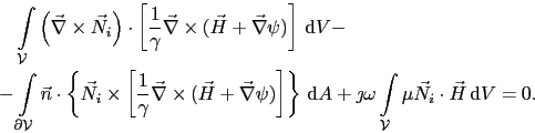 The vector finite element analysis will be demonstrated using the quasi magnetostatic case as described in Subsection 5.1.3. The Galerkin method is applied to (5.15) and the weak formulation for the vector differential operator, as discussed in Section 3.3, is used. This gives the following expression