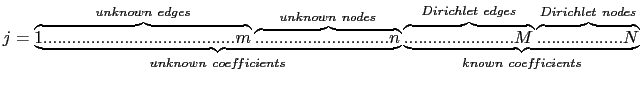 The coefficients for both, nodes and edges lying at the Dirichlet