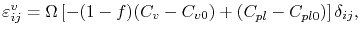The volumetric strain in a grain produced by the generation of vacancies is [53]