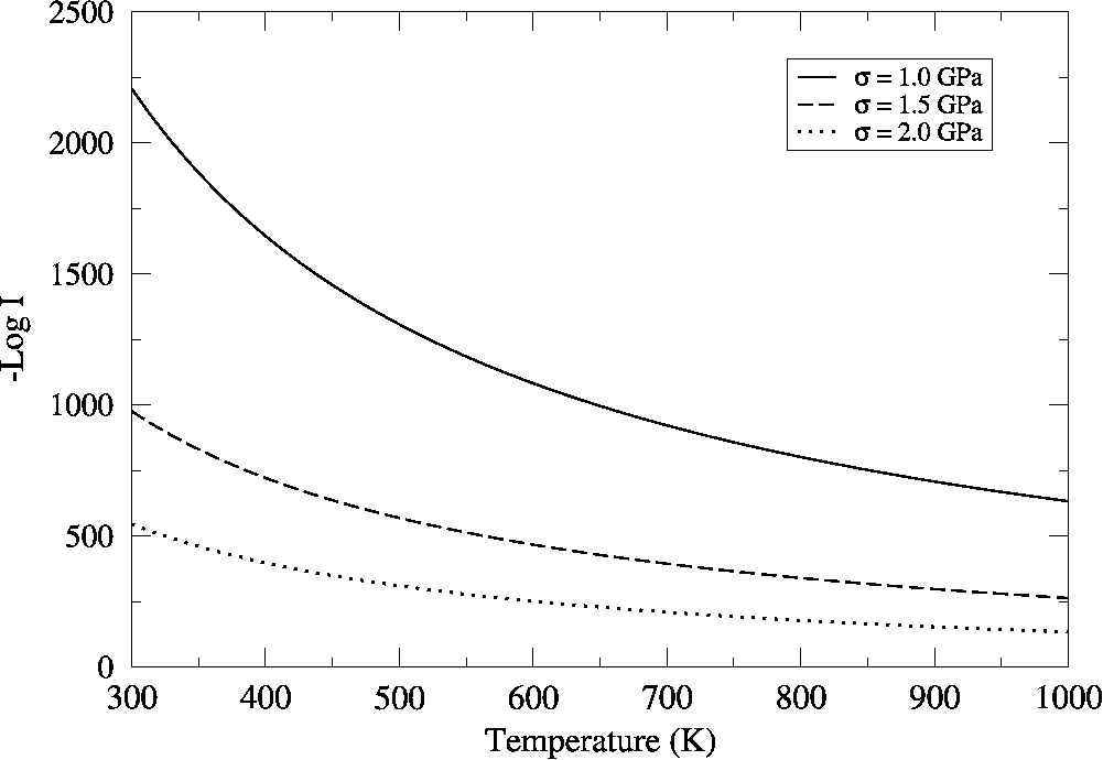 Figure 2.3 shows the rate of homogeneous nucleation as function of the temperature for different levels of stress. One can see that the nucleation rate is very small, and even a very high temperature and a high stress cannot significantly increase the nucleation rate. Gleixner et al. obtained small rates for nucleation at grain boundaries, at the metal/capping layer interface, and even at the metal/capping layer interface intersected by a grain boundary [89]. Therefore, none of these mechanisms can lead to void formation.