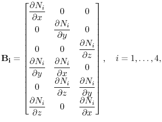 is the matrix of the derivatives of the shape functions for the node i [151]