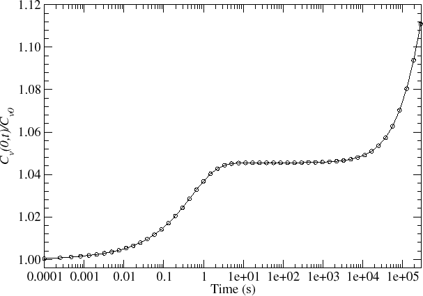 Figure 5.10 shows the development of the vacancy concentration at the cathode end with time.