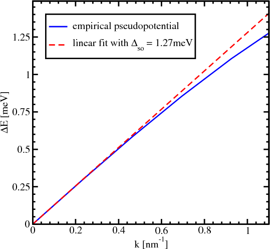 (shown in Figure 5.3) at small kx the value ΔSO = 1.27meVnm is found which is close to the one reported