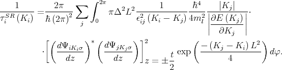 Ki,Kj are the in-plane wave vectors before and after scattering, φ is the angle between Ki and Kj, ϵ is the dielectric permittivity, L is the autocorrelation length, Δ is the mean square value of the surface roughness fluctuations, ΨiKi and ΨjKj are the wave functions, and σ = ±1 is the spin projection to the [001] axis.