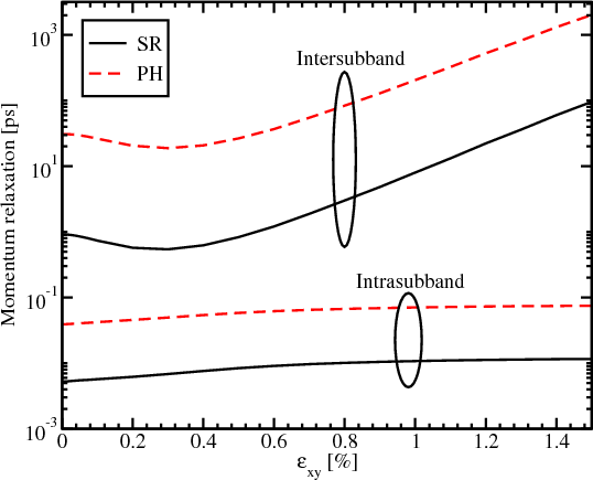 The surface roughness induced momentum relaxation matrix elements normalized to the value of the intrasubband scattering at zero strain are then calculated as