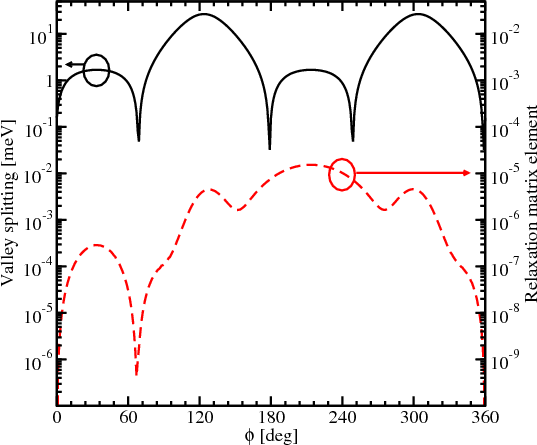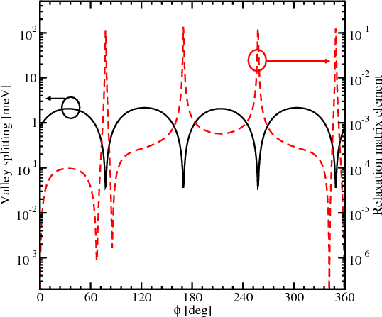 Oscillations of the valley splitting are observed. In Figure 7.1 the sharp increase of the relaxation matrix element is