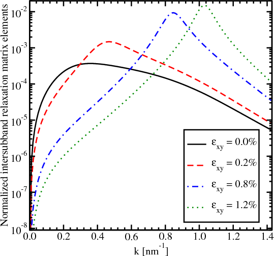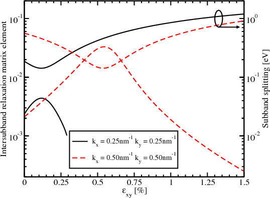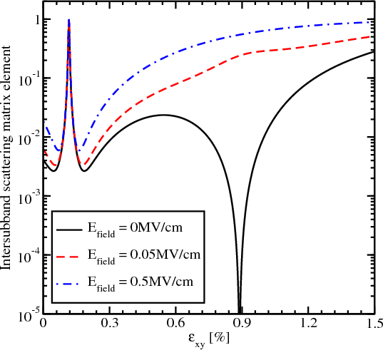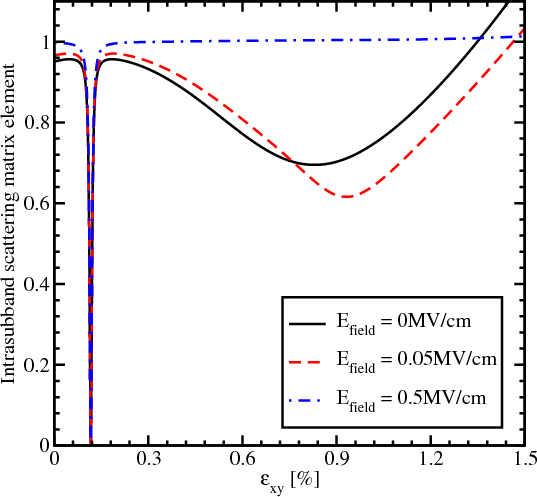 elements are sharply reduced only for the shear strain value of 0.116%. At the same time, the intersubband matrix elements