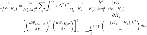 Ki,Kj are the in-plane wave vectors before and after scattering, φ is the angle between Ki and Kj, ϵ is the dielectric permittivity, L is the autocorrelation length, Δ is the mean square value of the surface roughness fluctuations, ΨiKi and ΨjKj are the wave functions, and σ = ±1 is the spin projection to the [001] axis.