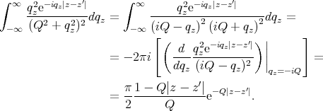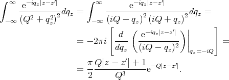 Applying the theory of residues with Q2 = q x2 + q y2, the following integral is calculated