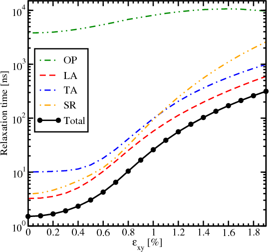 Figure 7.1 and Figure 7.2 show the spin relaxation matrix elements (normalized to intravalley scattering at zero strain)