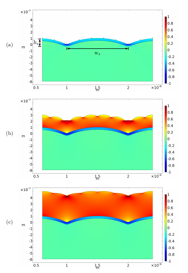 Deposition on scallops having the largest height/width ratio (hs=0.3 μm / ws=0.75