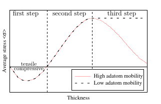 implemented. In general, stress in the film evolves from compressive to tensile and can
