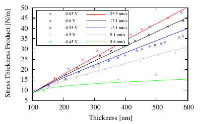 The experimental stress-thickness product as a function of thickness was reproduced by