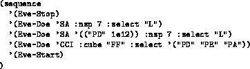 The Eve-Define-Control statements (cf. Section 8.4.1) define the position of the experimental control variables in the process flow. For example, the implantation angle anginc in the process step labeled POCKET-R is assigned the symbolic name PAR. The value of PAR is derived from the value of the control variable PA by multiplying with -1, leading to symmetric implantation profiles. The Eve-Set-Control statements define default values and ranges for the control variables.