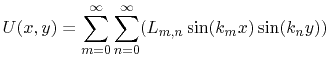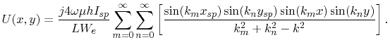 ![$\displaystyle U(x,y)=\frac{j4\omega\mu hI_{sp}}{LW_{e}}\sum_{m=0}^{\infty}\sum_...