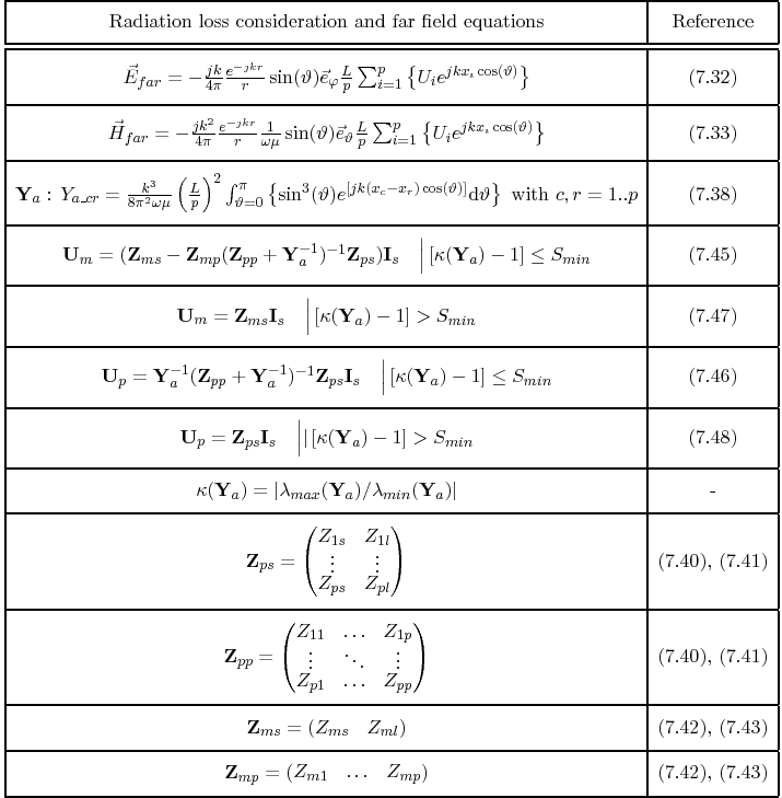 7.2.4 Summary of the equations for the introduction of the radiation loss into the