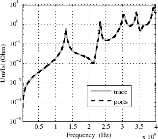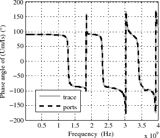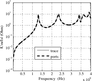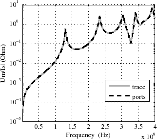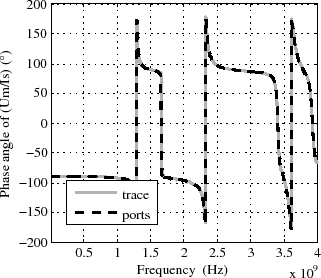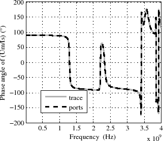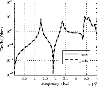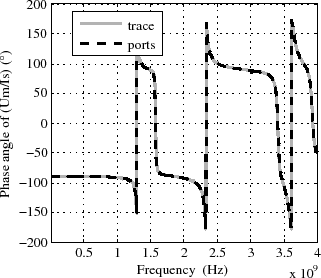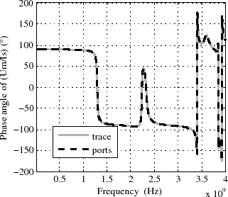 A variation of trace position on the enclosure bottom plane (ground plane) is carried out for a 5mm trace with 0.65mm height above the ground plane.