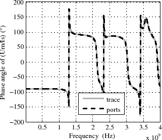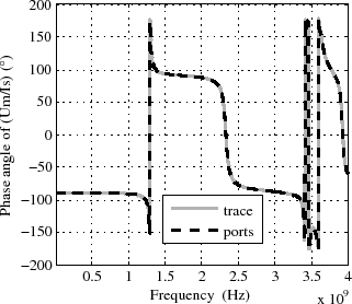 | Load: 50 Ohm, magnitude. | Load: 50 Ohm, phase angle. |