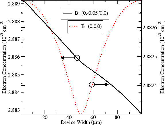 the transversal electric field. The extreme points in the electron concentration