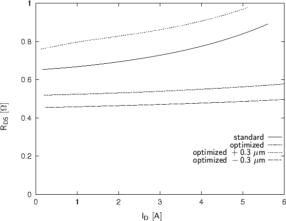 standard and the optimized device. The on-resistance of the device with the