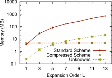 In Sec. 4.1 the coupling between the SHE equations is investigated and a scheme for the lossless compression of the system matrix is proposed, which greatly reduces the memory consumption of the SHE method at high expansion orders. The different boundary conditions used for the SHE method are discussed in Sec. 4.4 and extensions to the system matrix compression scheme are proposed in order to handle them. This chapter closes with some numerical results demonstrating the benefits of the proposed compression scheme.