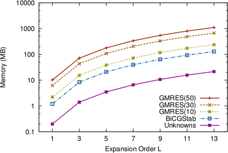 and BiCGStab is shown in Tab. 4.1 and Fig. 4.4. As expected, GMRES leads to higher memory