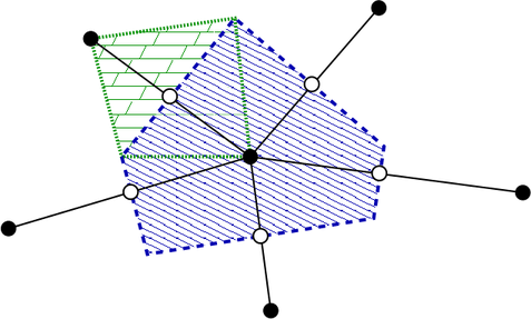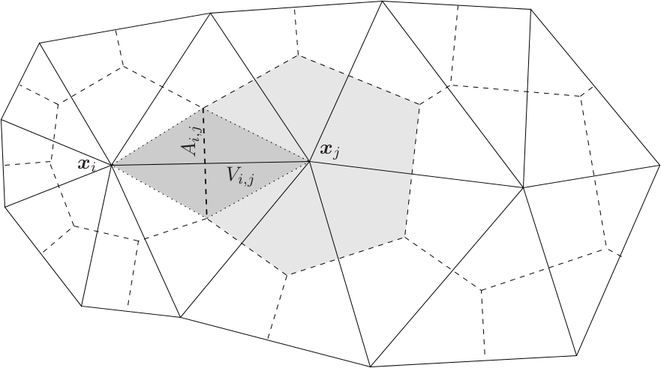 The advantage of Voronoi diagrams is that the interfaces between boxes are perpendicular to the connections between the respective vertices, thus allowing for the simple approximation of the normal flux. However, the generation of underlying Delaunay triangulations results in additional effort needed for mesh generation on the one hand and mesh refinement on the other hand [94, 113]. In addition, the computation of Voronoi diagrams becomes increasingly challenging in higher spatial dimensions.